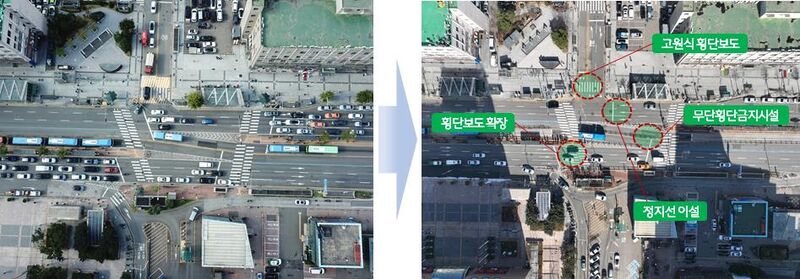 특히 지난해 개선이 완료된 서울 서초구 고속터미널 앞 지역은 무단횡단 사고가 빈번했던 곳으로, △협소한 횡단보도 확장 △무단횡단 금지시설 및 고원식 횡단보도 설치 △정지선 이설 등의 조치를 통해 보행자 안전을 강화했다. 그 결과, 해당 지역의 교통사고는 개선 전 연평균 20.7건에서 개선 후 4건으로 80.7% 감소했으며, 부상자 수도 26명에서 6명으로 76.9% 줄었다.