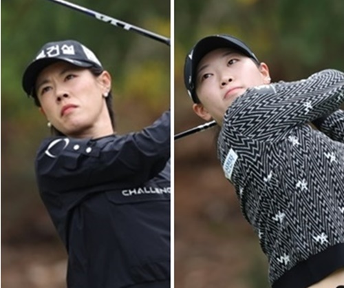 iM금융오픈 3라운드 공동 선두에 오른 박주영(왼쪽)과 방신실/사진=KLPGA 제공