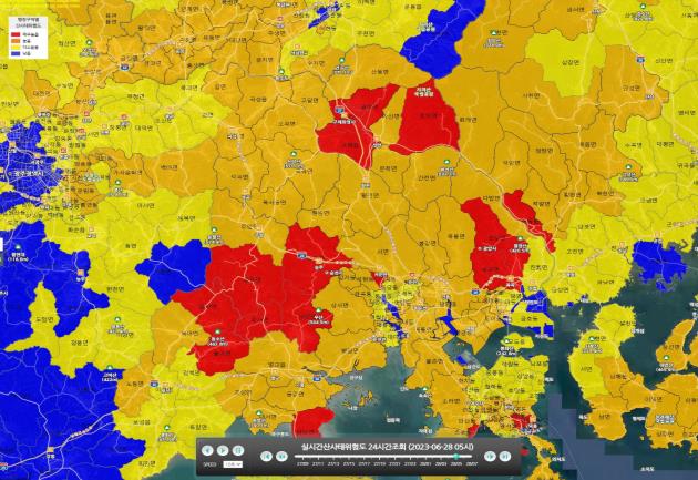 읍면동 기준 실시간 산사태 위험도/자료제공=국립산림과학원