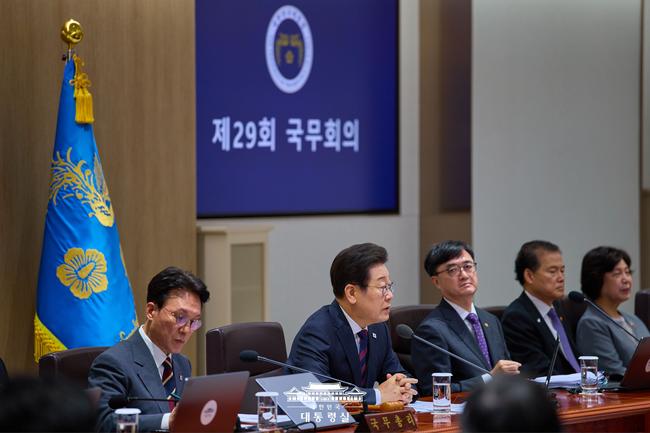 이재명 대통령이 5일 열린 제29회 국무회의에서 31조8천억 원 규모의 추가경정예산안을 심의·의결하고, 민생 회복 소비 쿠폰 집행 계획을 보고받는 등 긴급 재정 집행에 속도를 낼 것을 지시했다사진=대통령실 제공