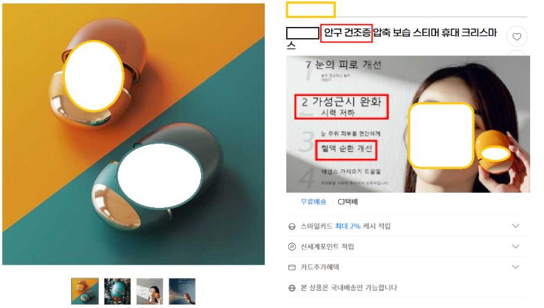 적발된 광고는 ▲안구건조증 ▲건조증 ▲근시 완화 ▲비염 치료 효과 등을 표방하며 일반 공산품을 마치 의료기기처럼 홍보한 것이 특징이다.