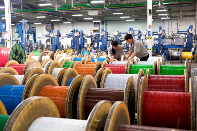 LS전선 직원들이 데이터 케이블을 생산하고 있는 모습/사진=LS전선 제공