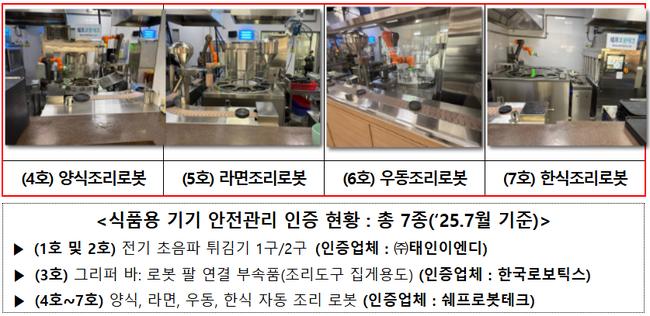 이번 조리로봇 4종까지 포함하면 지금까지 총 7종의 식품용 기기가 인증을 받았다.