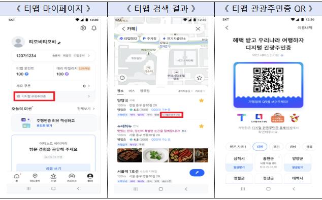 이번 티맵 연계를 통해 이용자는 앱에서 맛집, 카페, 관광지 등을 검색할 때 해당 장소가 관광주민증 가맹점인지 여부와 함께 받을 수 있는 할인 혜택을 한눈에 확인할 수 있다.