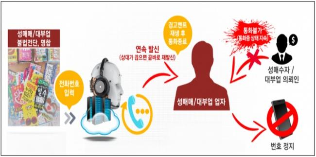 자동경고발신시스템은 불법 광고물에 기재된 전화번호로 일정 시간 간격을 두고 자동·반복적으로 전화를 걸어 해당 번호가 실질적으로 활용되지 못하도록 하는 방식이다.