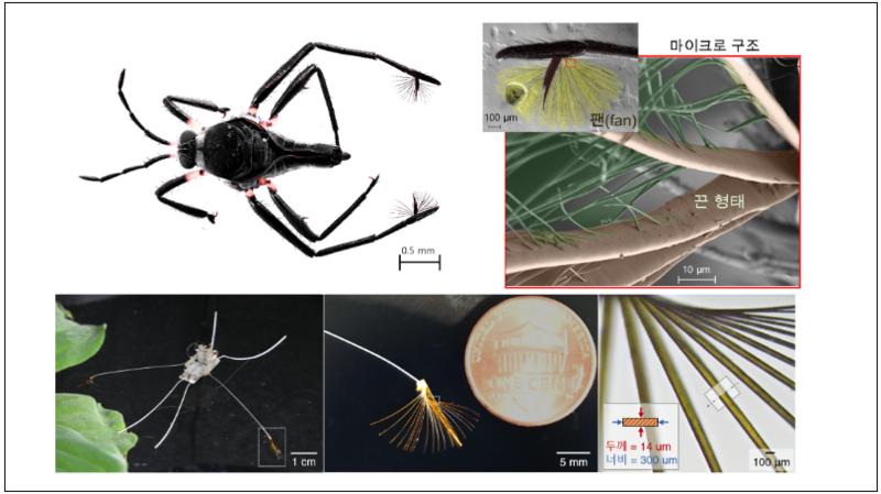 국내 연구진이 수면 위를 자유자재로 움직이는 곤충 ‘라고벨리아(부채다리 소금쟁이)’의 비밀을 밝혀내고, 이를 모사한 초소형 로봇 개발에 세계 최초로 성공했다.