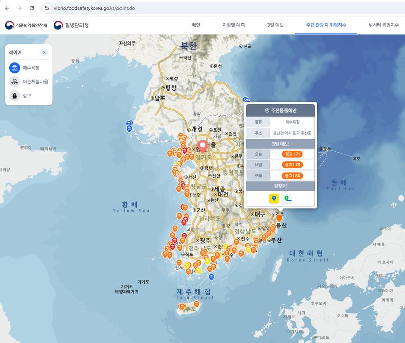 또한, 비브리오 패혈증균 예측 정보는 ‘비브리오 예측시스템’을 통해 제공되며, PC와 모바일에서 모두 확인할 수 있다.