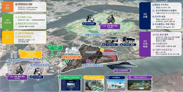 ‘영암 수소도시 조성 사업’은 2026년부터 2028년까지 3년간 총 350억 원 규모로 추진된다. 영암 삼포지구 약 3000평 부지에 청정수소 생산시설이 구축되며, 볏짚·왕겨 등 농업부산물 50톤/일을 활용해 청정수소 2.1톤/일을 생산할 예정이다. 이를 교통, 발전, 생활 등 지역 전반에 공급해 지역 순환형 수소 생태계를 구현한다.