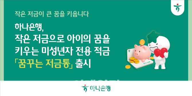 하나은행이 미래 세대의 건전한 금융 습관 형성과 안정적인 자산 마련을 지원하기 위해 미성년자 전용 적금 상품 ‘꿈꾸는 저금통’을 출시했다고 17일 밝혔다.