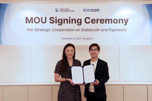 비즈니스 데이터 플랫폼 기업 쿠콘이 싱가포르에서 솔라나 재단(Solana Foundation)과 스테이블코인 기반 결제 솔루션 개발 및 글로벌 결제 인프라 확장을 위한 전략적 업무협약(MOU)을 체결했다고 14일 밝혔다.