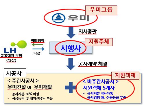특히 2016년 8월 한국토지주택공사(LH)가 공공택지 1순위 입찰 기준을 ‘주택건설 실적 300세대 이상’으로 강화하면서, 실적이 없는 계열사들이 1순위로 입찰할 수 있도록 인위적으로 지원하는 행위가 발생했다.