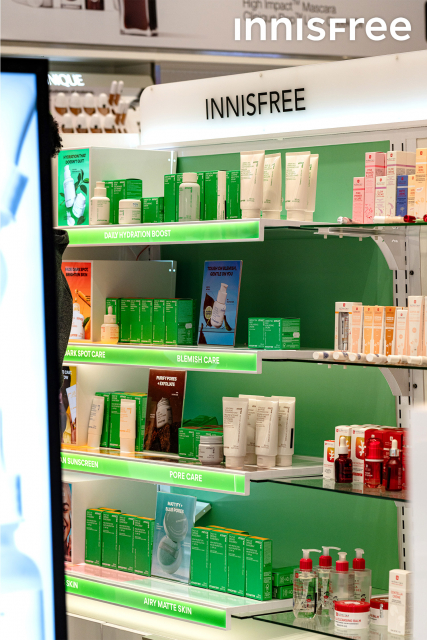 매장에서는 이니스프리의 대표 제품인 ‘그린티 히알루론산 수분 세럼’, ‘화산송이 모공 듀얼 마스크팩’, ‘비타민C 캡슐 세럼’ 등 10개 주력 제품이 우선 선보여졌다.