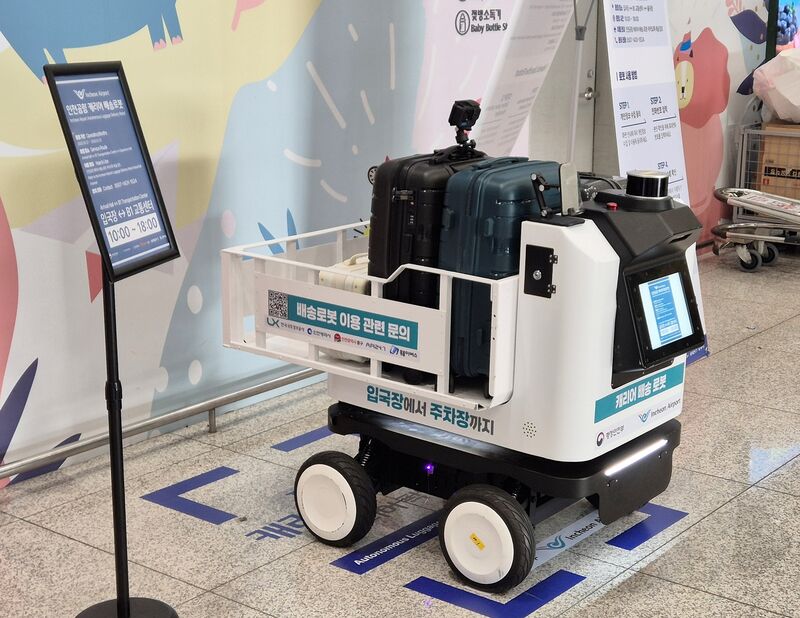 인천국제공항에서 ‘캐리어 배송 로봇’이 이용객의 짐 운반을 지원하고 있다/사진=행정안전부 제공