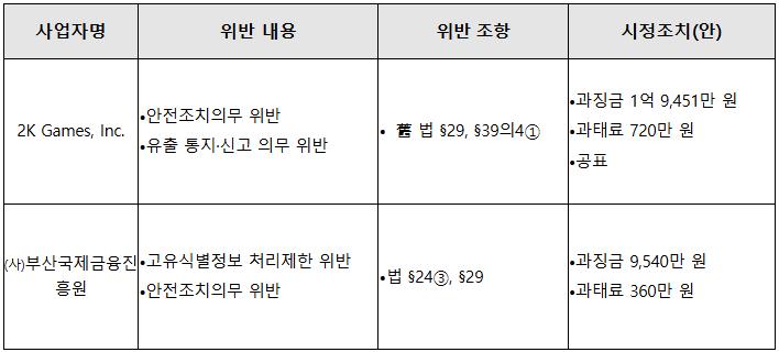 개인정보위는 이에 따라 2K Games에 대해 과징금과 과태료 부과 및 공표 조치를 결정했다. 한편 현재는 2023년 9월 개정된 관련 법령에 따라 신고·통지 기한이 72시간으로 조정돼 있다.