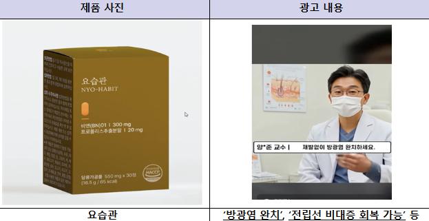 이와 함께 일반식품을 의약품과 유사하게 모방해 광고한 업체는 4개소로, 약 30억 원 상당의 식품을 판매한 것으로 확인됐다.