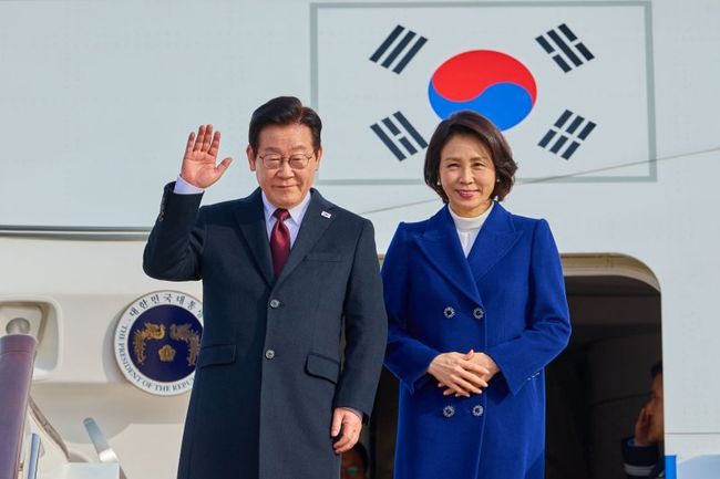중국을 국빈 방문한 이재명 대통령과 김혜경 여사가 4일(현지 시간) 베이징 서우두 국제공항에 도착해 인사하고 있다/사진=IPC 제공