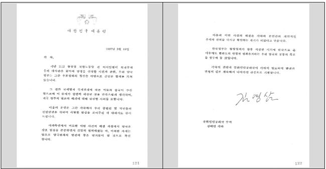 주요 외교 기록으로는 김영삼 대통령과 강택민 중국 국가주석이 양국 우호 증진을 위해 주고받은 서한, 중국 지진 피해에 대한 위로 전문, 국제적 관심을 받았던 ‘황장엽 망명’ 관련 친서 등이 공개된다.