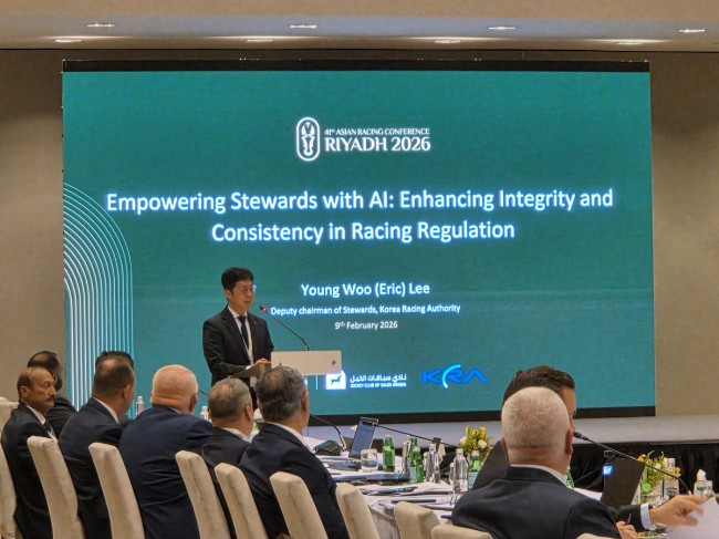 한국마사회는 지난 9일 리야드에서 열린 제14회 International Stewards' Conference에서 ‘한국 경마 심판분야 AI 적용 사례’를 주제로 발표를 진행했다고 밝혔다.