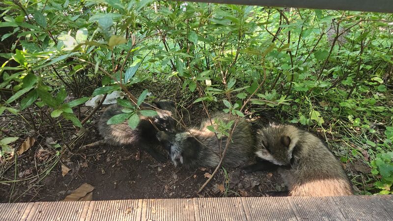 지난해 여름 봉화산 둘레길에서 만난 새끼 너구리 3형제/사진=경제엔미디어