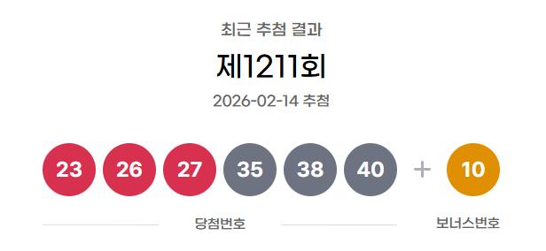 추첨 결과 1등 당첨번호는 '23, 26, 27, 35, 38, 40‘ 이며, 1게임당 23억7095만 원씩의 당첨금을 받는다.