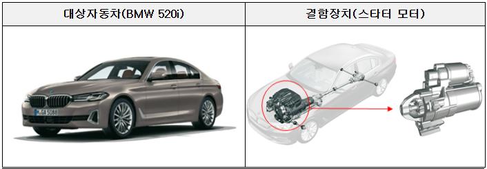 비엠더블유코리아의 경우 520i 등 32개 차종 6만7878대에서 스타터 모터 내부 부품의 단락으로 인한 화재 발생 가능성이 발견됐다. 이에 따라 해당 차량은 3월 4일부터 시정조치가 진행될 예정이다.