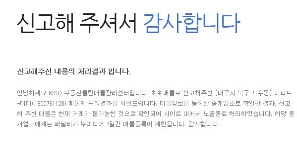 | ▲ 허위매물 신고 결과 네이버의 답변 |