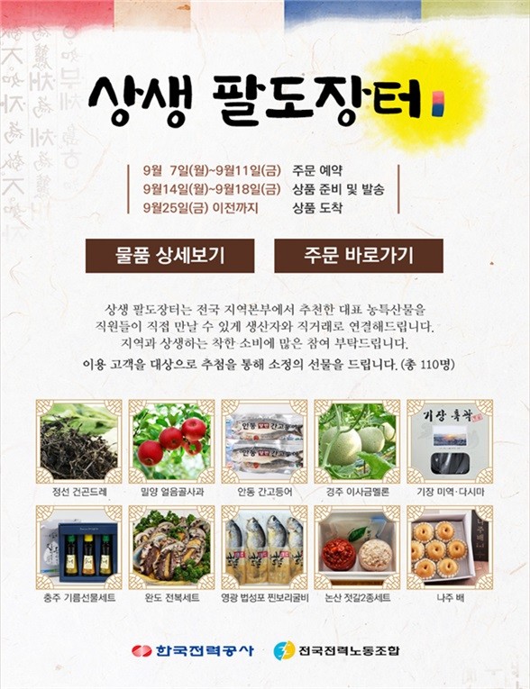 한국전력, ‘상생 팔도장터’ 온라인 판매 11일까지 운영