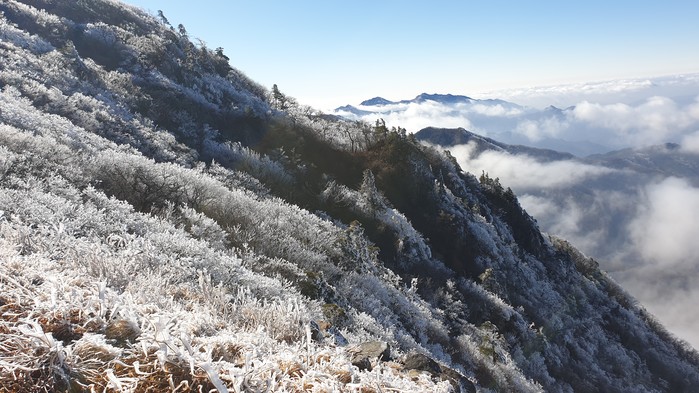 - 최근 강추위가 계속된 가운데, 덕유산국립공원에 하얗게 상고대가 피어있다. 부영그룹 무주덕유산리조트에서 관광곤도라를 타면 1,520m 설천봉까지 쉽게 오를 수 있고, 정상인 향적봉까지는 편…