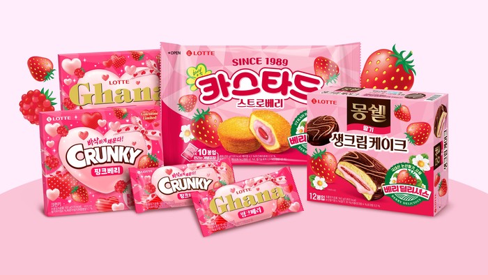 이번 딸기 기획 제품은 ▲몽쉘 딸기 생크림 케이크 ▲카스타드 스트로베리 ▲가나 핑크베리 ▲크런키 핑크베리 등 4종이다.