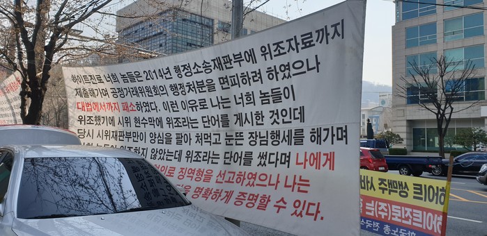 | ▲하이트진로 본사앞 항의시위 현수막 |