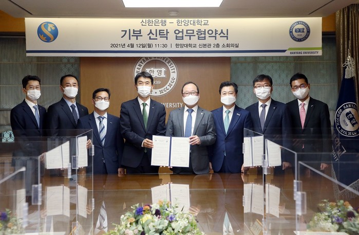 신한은행 관계자는 “한양대학교와의 업무협약을 계기로 누구나 쉽게 참여하는 기부문화가 정착되길 기대한다”며 “고령화 사회에 맞춰 유언대용, 후견, 병원비 신탁 등 다양한 고객 맞춤형 신탁상품으로 금융솔루션을 제공하겠다”고 말했다.