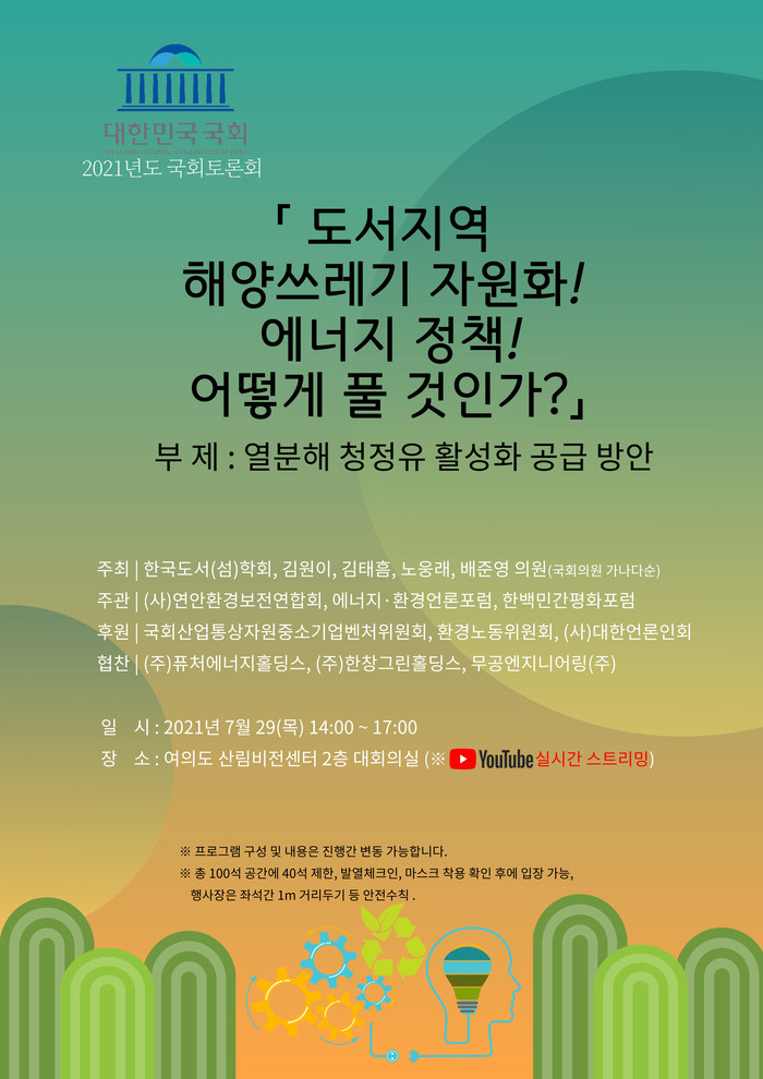 이번 포럼은 도서지역에 해양쓰레기를 에너지로 활용화 방안에 대한 논의하는 자리이다. 또 해양쓰레기를 열분해 청정유 활성화 공급 방안에 대해서도 논의할 예정이다.