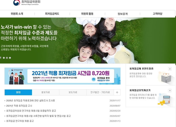 ▲ 최저임금 위원회 홈페이지
