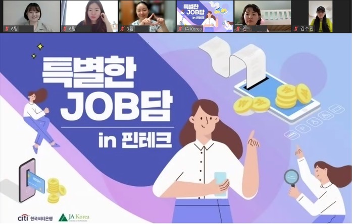 [경제&=김지영 기자] 한국씨티은행은 JA 코리아와 니난 4일 여대생들의 취업지원을 위한 ‘씨티-JA 특별한 잡(Job)담 in 핀테크’를 온라인으로 실시했다고 6일 밝혔다.