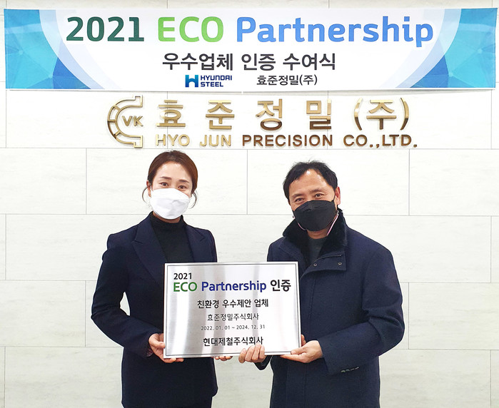 [경제&=윤재우 기자] 현대제철이 지난 23일 친환경 우수 협력사로 선정돼 2개 업체에 에코파트너십 인증패와 현판을 수여했다고 24일 밝혔다.