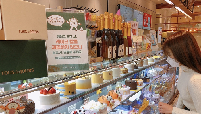 이달부터 전국 직영점과 60여개 가맹점에서 케이크류 구매 시 플라스틱 칼과 1회용 식기를 고객이 요청하면 제공한다. 또 올해 타 지역 및 국가로 확대 예정이다.
