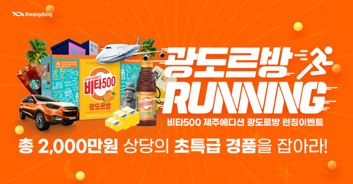 [경제&=양순미 기자] 광동제약(대표이사 최성원)은 ‘비타500 광도르방’ 론칭 기념 첫 지역으로 제주도 주요 관광지와 연계한 ‘광도르방 러닝 이벤트’를 진행한다