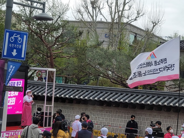 ▲ 4월13일 민주노총 서비스연맹 급식노동자 궐기대회