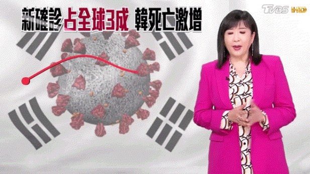 [경제&=온라인팀] 대만의 방송사 TVBS가 한국의 코로나19 상황을 방송하면서 태극기의 태극문양에 코로나 바이러스를 합성해 방송을 내 보냈다.