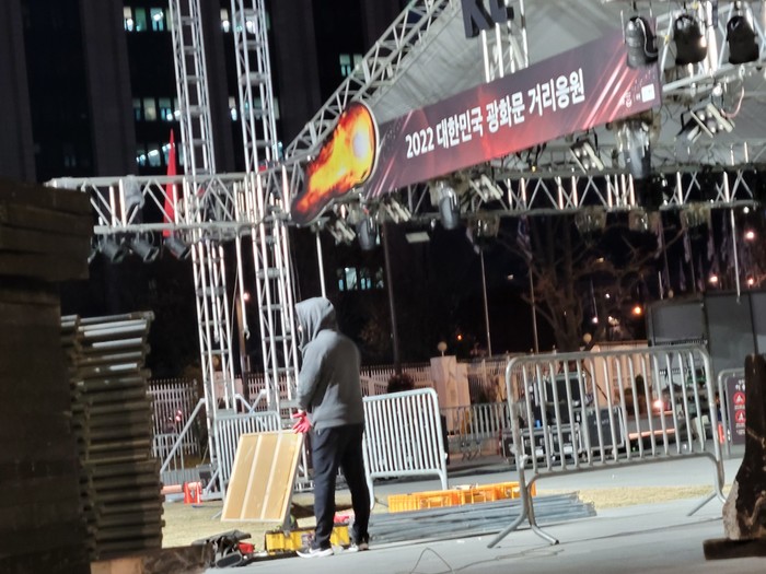 월드컵 우루과이전 무대 설치중인 광화문 광장