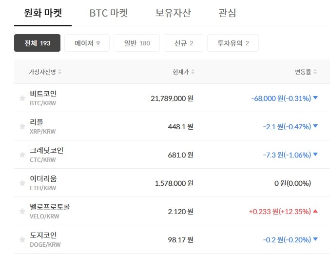 | ▲ 빗썸 코인 가격 캡쳐 |