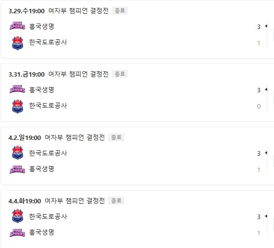 [경제&=온라인팀] 한국도로공사가 예상과 달리 쉽게 무너지지 않았다. 4월 4일 한국도로공사 홈인 김천실내체육관에서 열린 챔피언 결정전 4차전에서 흥국생명을 3대1로 꺽고 마지막 경기 5차전까지 끌고 갔다.