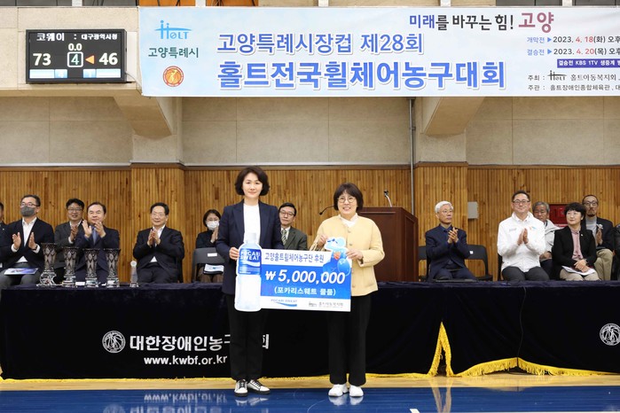 [경제&=양순미 기자] 대회 개막식에서 동아오츠카는 이번 대회에 참여한 휠체어 농구 6개 팀 모두에게 포카리스웨트 행복나눔상을 시상했다.