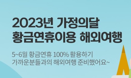 노랑풍선 여행사에서는 '가정의 달 여행 다 가정'기획전을 오픈했다. 아버지와 함께 하는 골프, 형제 자매가 함께하는 여행등 동반인 유형에 따른 맞춤형 여행지와 테마 상품을 추천하고 있다.