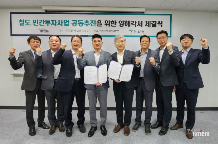 앞서 현대로템은 지난달 28일 하나은행과 철도 민간투자사업 공동추진을 위한 양해각서(MOU)를 체결, 철도 민간투자사업을 추진하는데 있어 전략적 협력관계를 구축하기로 했다.