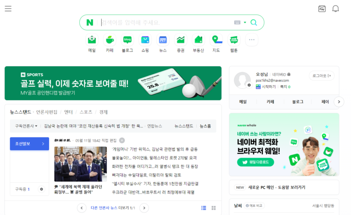 새로운 PC메인에서는 사용자들이 매일 확인하는 날씨, 증시, 뉴스가 더욱 풍부하게 제공된다. ‘날씨’ 영역에서는 실시간 날씨와 미세먼지 정보, 시간대별 날씨를 한 번에 확인할 수 있다.