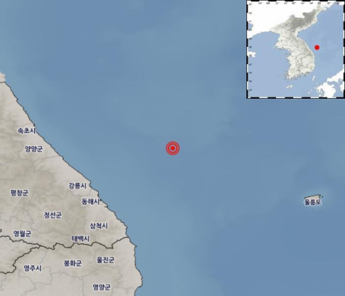 오늘 아침 6시 27분 36초에 강원도 동해시 북동쪽 59KM 떨어진 해역에서 규모 4.5의 지진이 발생했다고 기상청이 밝혔다. 진앙의 깊이는 32KM였다.