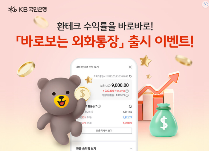 KB국민은행이 달러 환테크를 쉽게 할 수 있는 ‘바로보는 외화통장’을 출시했다고 26일 밝혔다.
