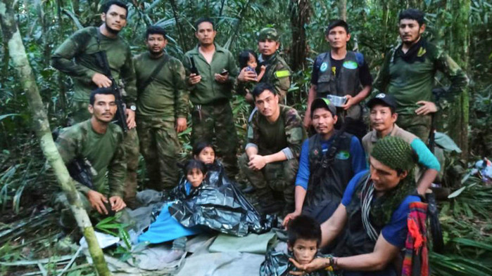지난달 5월 1일 콜롬비아 경비행기 추락 사고에서 살아남은 네 명의 어린이가 사고 발생 40일 만에 아마존 정글에서 발견됐다.