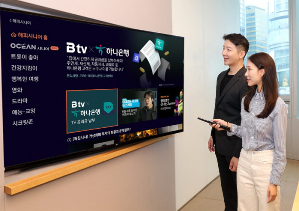 하나은행이 시니어 세대를 위한 금융접근성을 개선하고 금융소비자의 편의성 제고를 위해 SK브로드밴드 ‘B tv’를 통한 ‘TV 공과금 납부’ 시범서비스를 시작한다고 밝혔다.